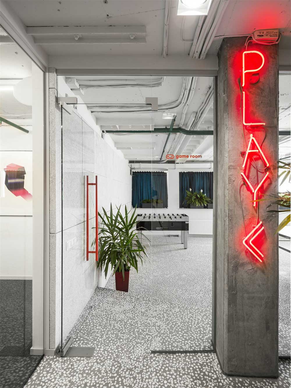 游戲公司辦公室里,設置了可以打桌上足球和乒乓球的娛樂室,極大的緩解了工作的壓力,增進員工間的感情培養。