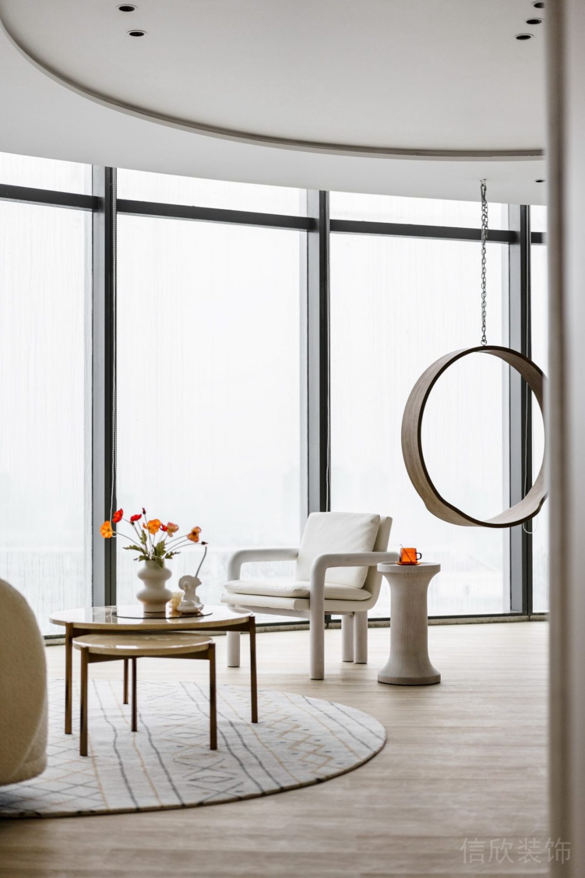 現代落地式玻璃窗休息室裝修設計以其開放通透的特點,為員工提供了一個舒適愜意的休憩空間。在這樣的設計中,大面積的落地式玻璃窗將自然光線引入室內,增強了空間的明亮度和開放感,同時也為員工帶來了與室外環境親近的感覺。