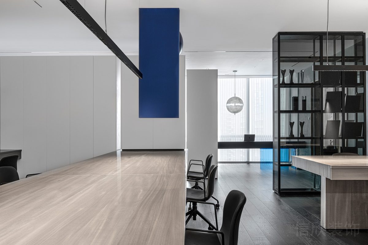 現代中式大理石搭配原木桌子的辦公室裝修設計將現代與傳統相融合,展現出獨特的韻味和品味