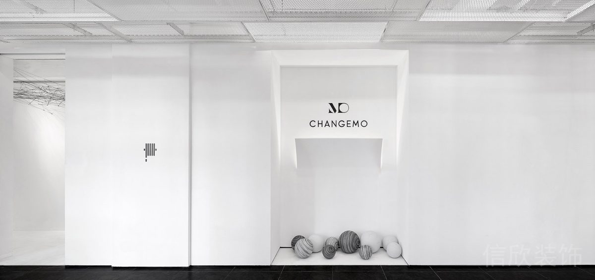 大理石設計墻體展示柜裝修白色效果滑輪黑白色調裝修內嵌式抽拉裝修辦公室