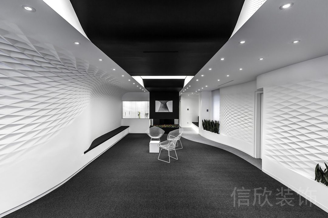 黑白色調設計辦公室過道效果會議室裝修撞色設計效果