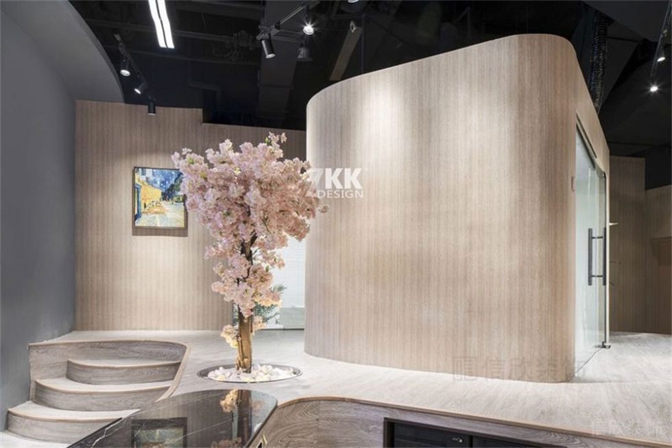 原木風的背景墻和吧臺,配上樹木的元素,看起來更貼近大自然的生活,充滿生機勃勃的活力。