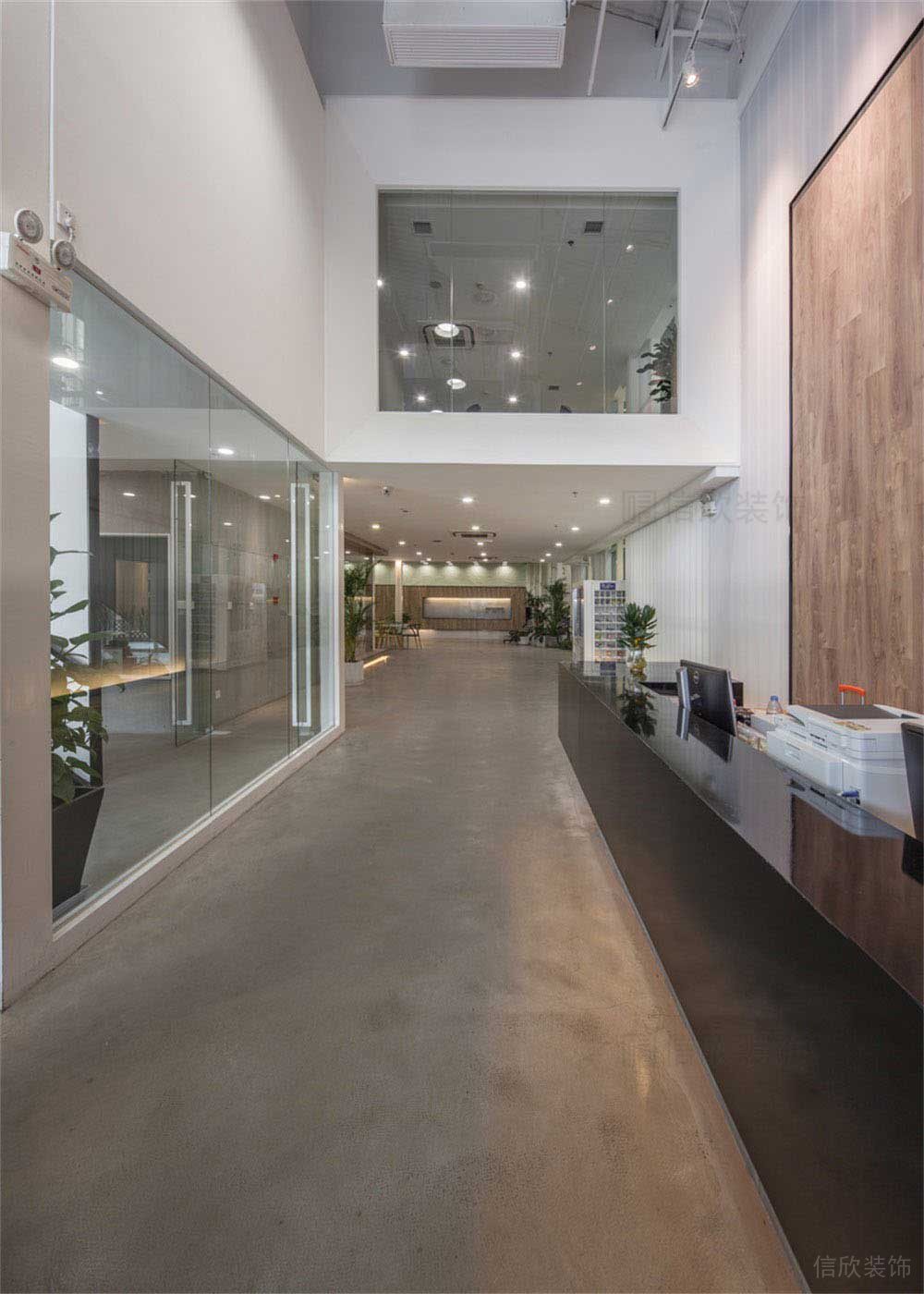前臺的設計,原始的水泥板工業感的狂野,原木飾面板和黑色人造石,提升了檔次,把古典和現實的情懷,做了一個完美的融合。