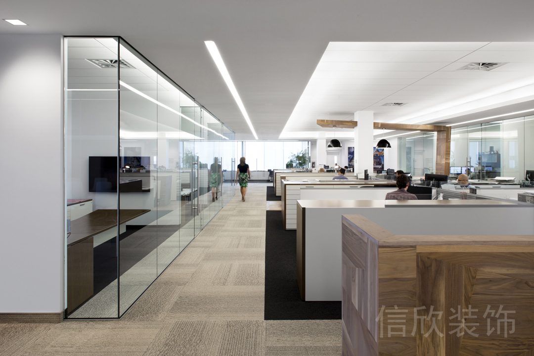 將鋁合金面板與灰色大理石瓷磚相結合,能夠創造出一種既現代又具備高檔感的辦公室環境。