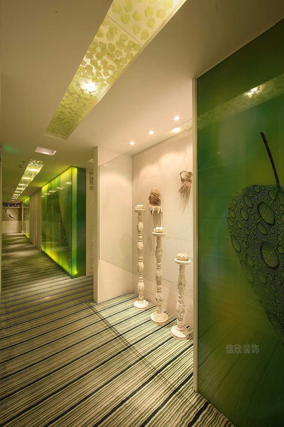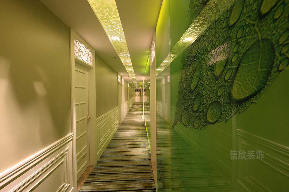 走廊的整體設(shè)計(jì),采用通透式一眼到底方式,讓整體狹小的空間,視覺效果上更寬敞,更開闊,綠色的燈膜不僅延伸性強(qiáng),而且把整個(gè)空間變成優(yōu)雅的綠意,讓人心曠神怡。