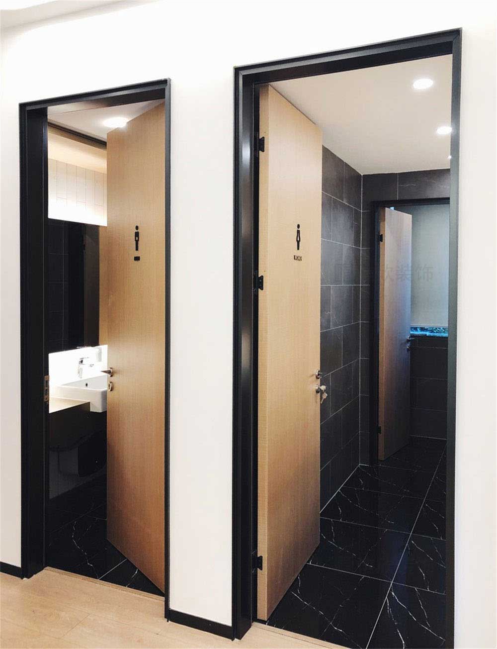 衛(wèi)生間的設(shè)計(jì),才用黑金花地磚和原色木門的結(jié)合,看起來深沉內(nèi)斂,但是又不缺乏檔次和美感。