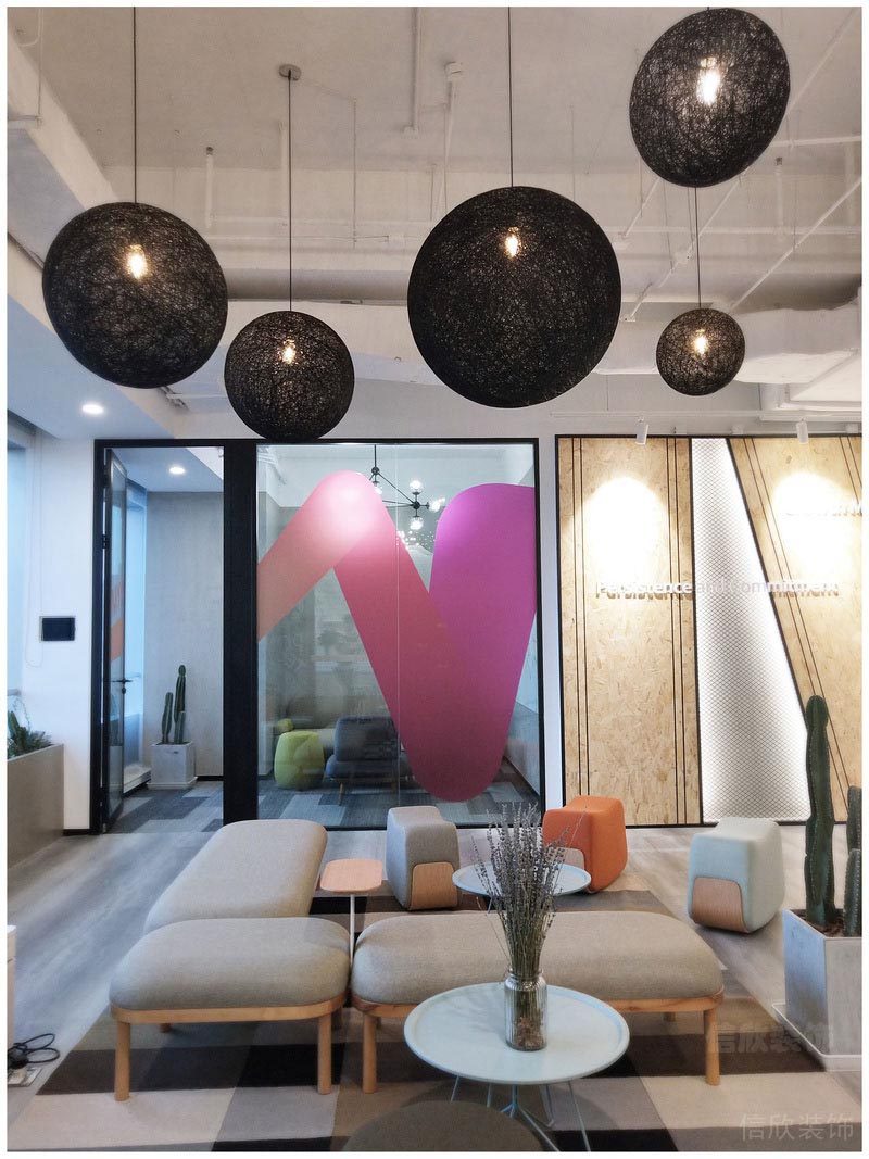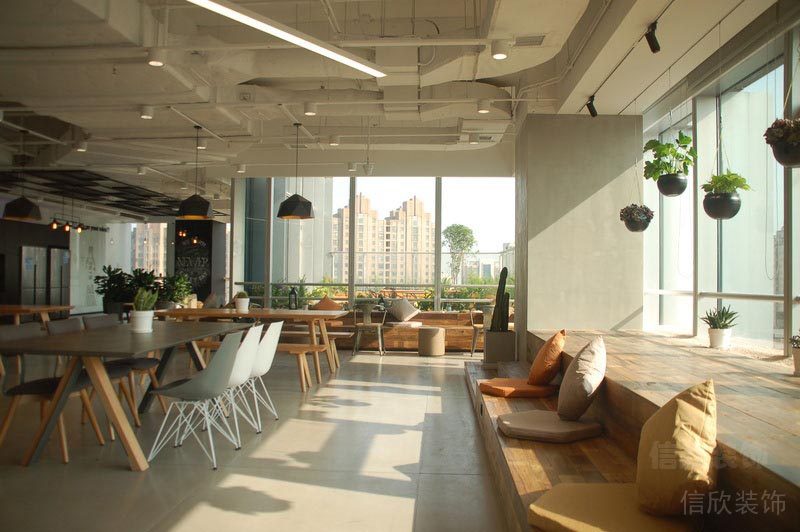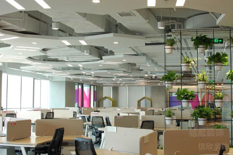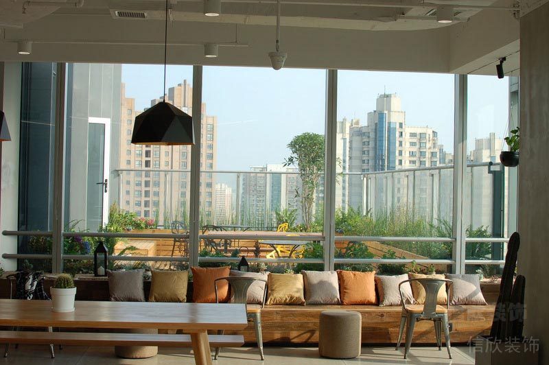 本案位于深圳市是一所田園風(fēng)格的辦公室裝修設(shè)計(jì)案例,在墻面上大量使用玻璃墻,使空間的通透性強(qiáng),人們可以通過(guò)玻璃看到窗外的世界,使辦公空間與室外自然環(huán)境在一定程度上達(dá)到相互融合。同時(shí),室內(nèi)植物在陽(yáng)光的照射下形成自然的光影,對(duì)辦公空間有一定裝飾性。