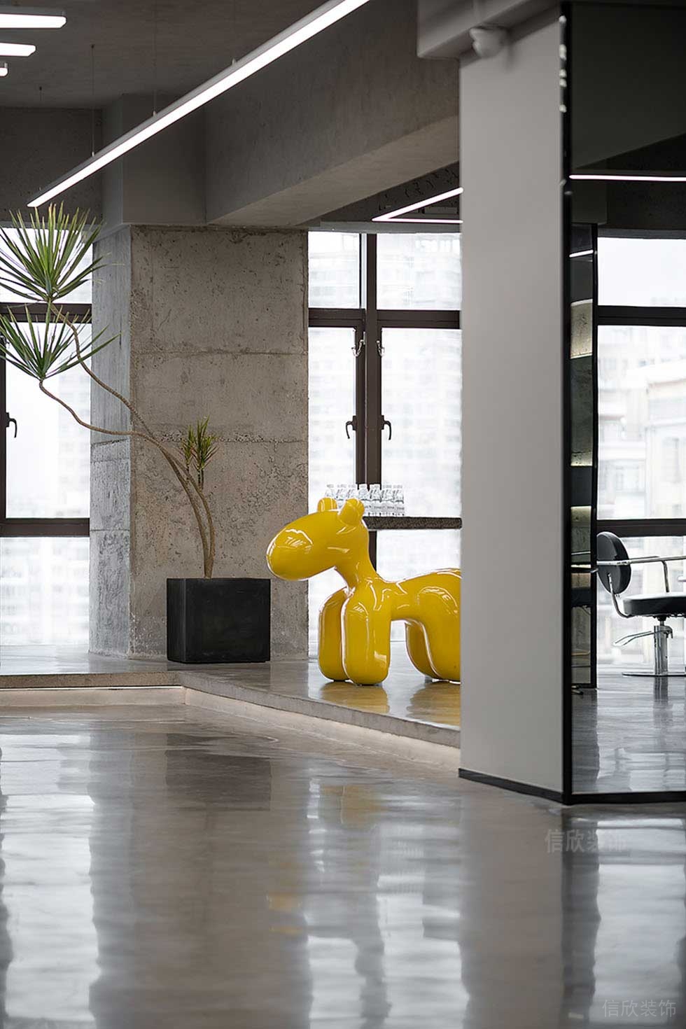 踏進(jìn)空間的第一感覺,簡約混凝土給人一種現(xiàn)代工業(yè)氣息,天然的材質(zhì),良好的采光,讓愜意與舒適始終環(huán)繞左右。空間里的水泥墻具有現(xiàn)代感,使空間添加一分幽靜,置身其中感受靜寂與夸姣的慢韶光。在這個單純規(guī)矩的小空間里有一點躍動,而這個不規(guī)則的造型也有寓意,寓意著一種改變、一種不循規(guī)蹈矩的自由。