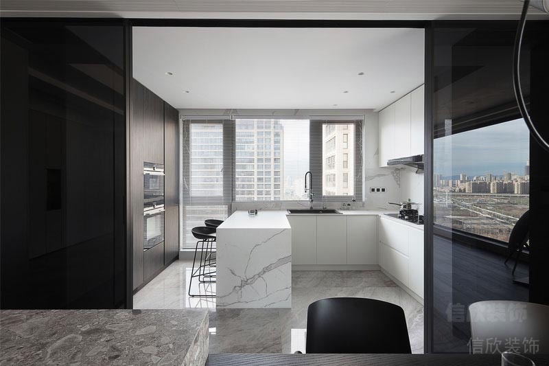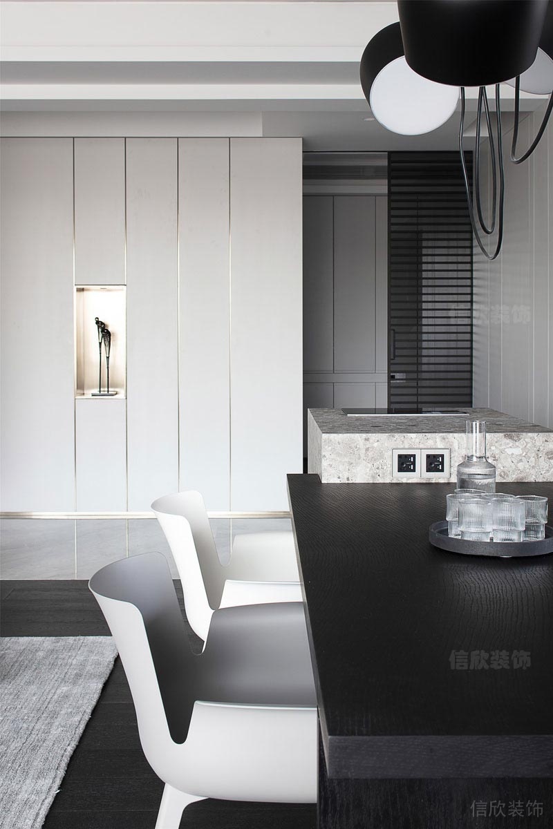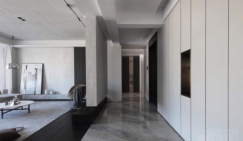 本案位于深圳市南山區西麗匯城茗院是一個后現代風的黑白灰二手房翻新改造裝修設計案例,通過對形狀輪廓和光影進行高度歸納和提煉,利用干凈利落的線條和黑白高反差,塑造強烈的視覺沖擊力。靜謐的黑,與裝置藝術互映成畫,區域的斑駁紋理,讓人感知到另一種寧靜的東方美學。