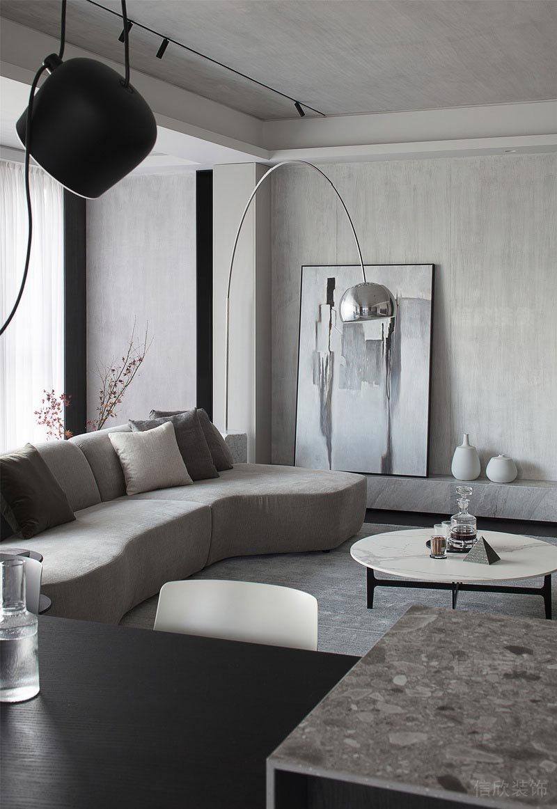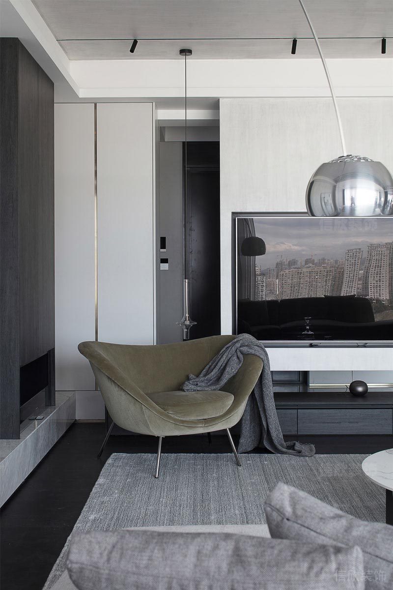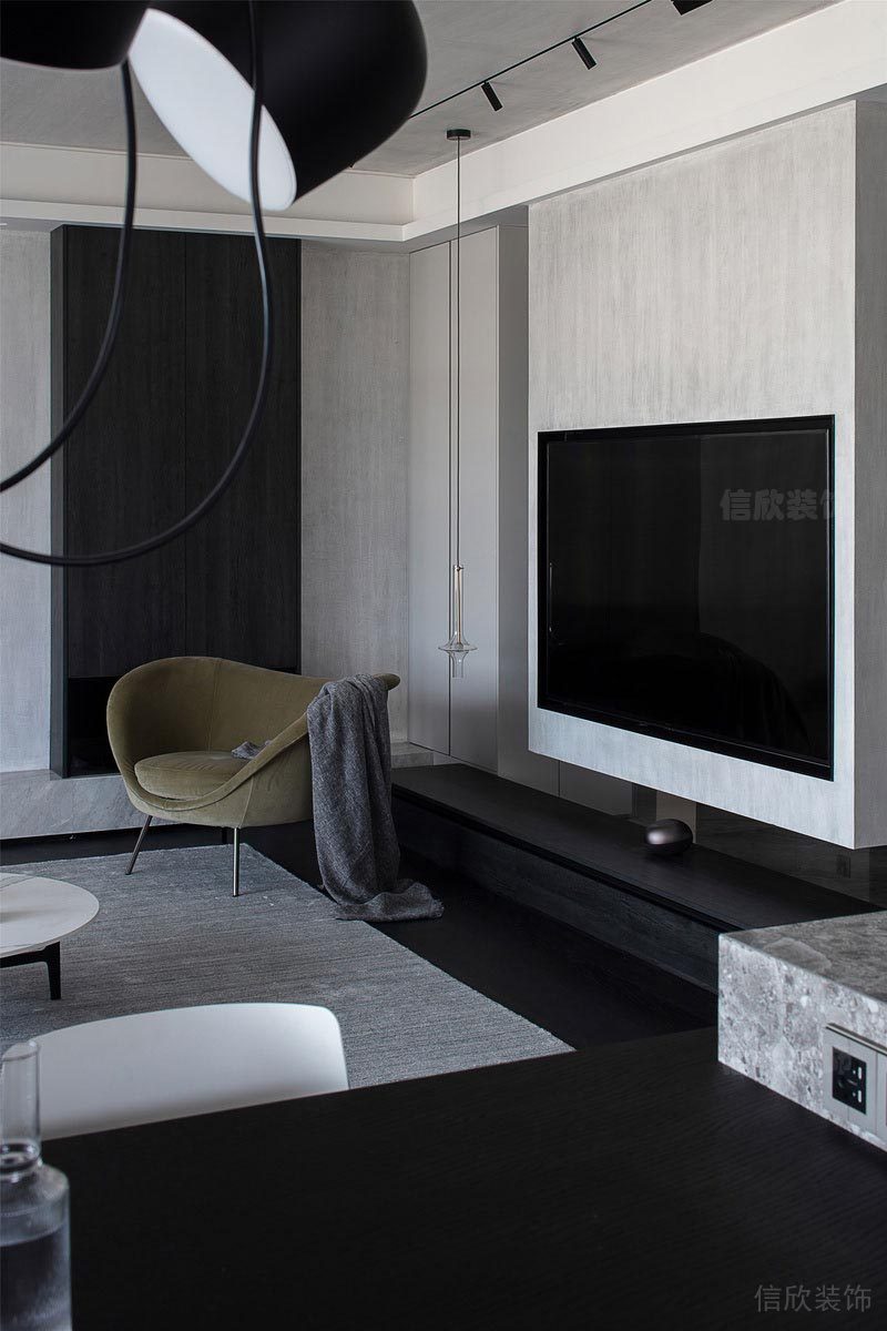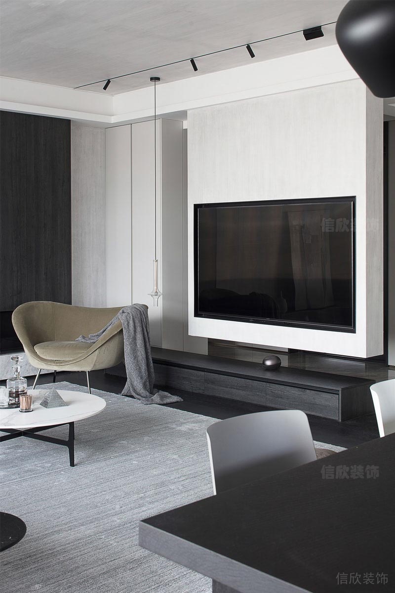 深圳市南山區西麗匯城茗院客廳 后現代風黑白灰的高雅,在于整體的一個協調性和線條感,不做過多的外表裝飾,更注重精神世界的修為。