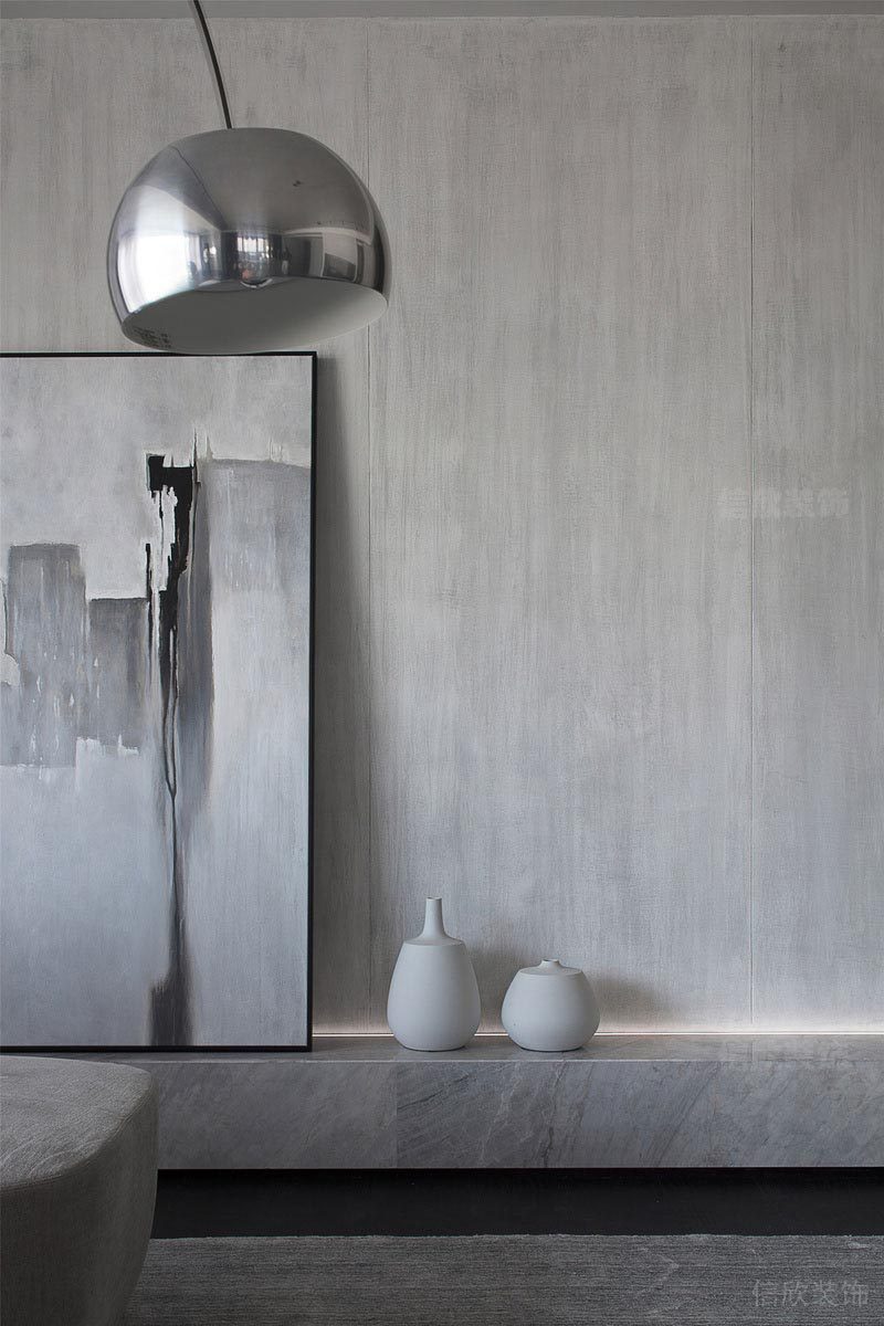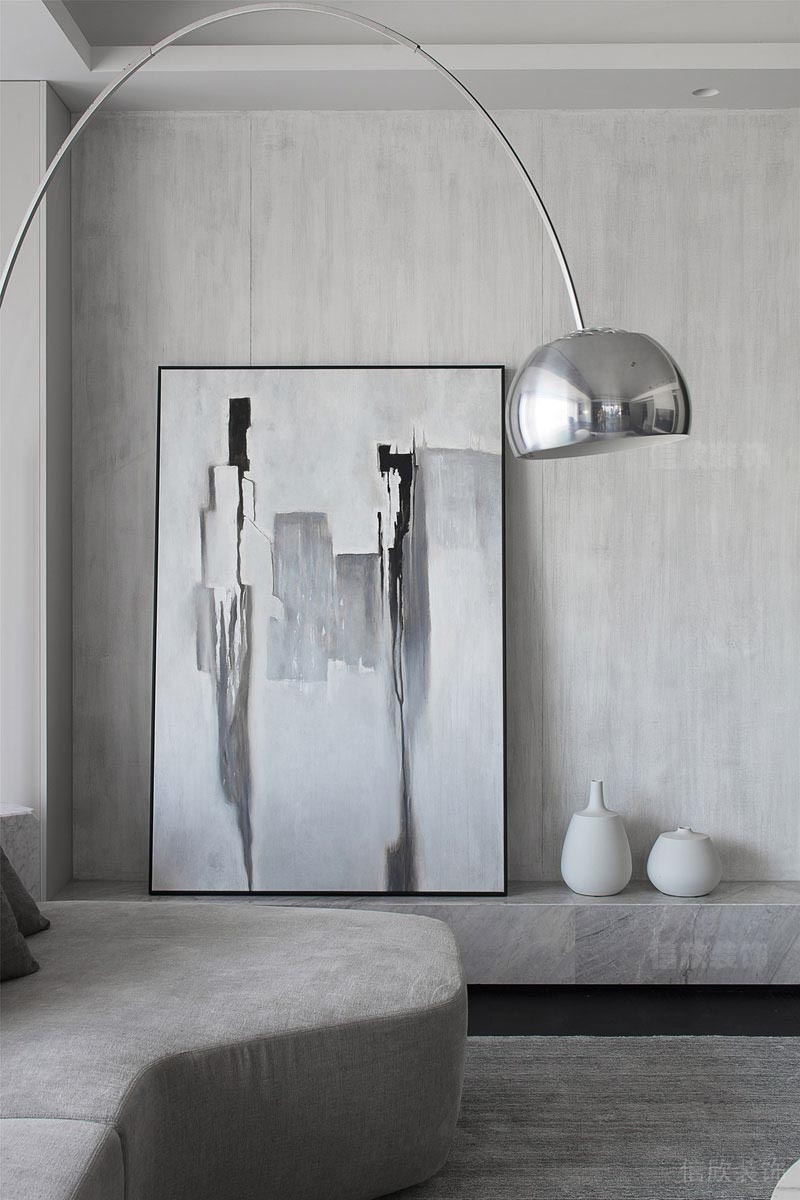 深圳市南山區西麗匯城茗院裝飾畫 灰色的壁紙,搭配白色裝飾物的素白更顯一種素雅之美,巨幅的抽象畫,顯示出主人更注重內心世界的追求。