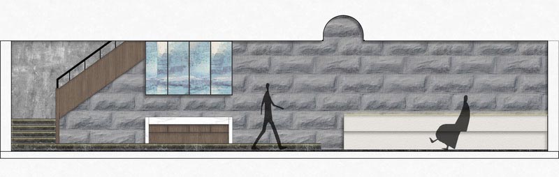 設計用肌理涂料來漫反射,從視覺上著手,拉伸空間,消減壓抑感。