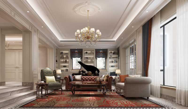 客廳作為重中之重的區域,取消了傳統電視機和電視機柜的組合,通過霧化壁爐及裝飾畫,讓客廳成為一個一家人溝通交流的地方,而小朋友練琴是需要大人陪伴聆聽的,所以我們在沙發后放置三角鋼琴,滿足觀賞性的同時,又給予了小朋友與大人陪伴的空間。